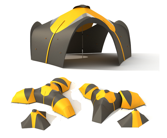 The FORUM creates a protected living space by connecting the Approach tents.