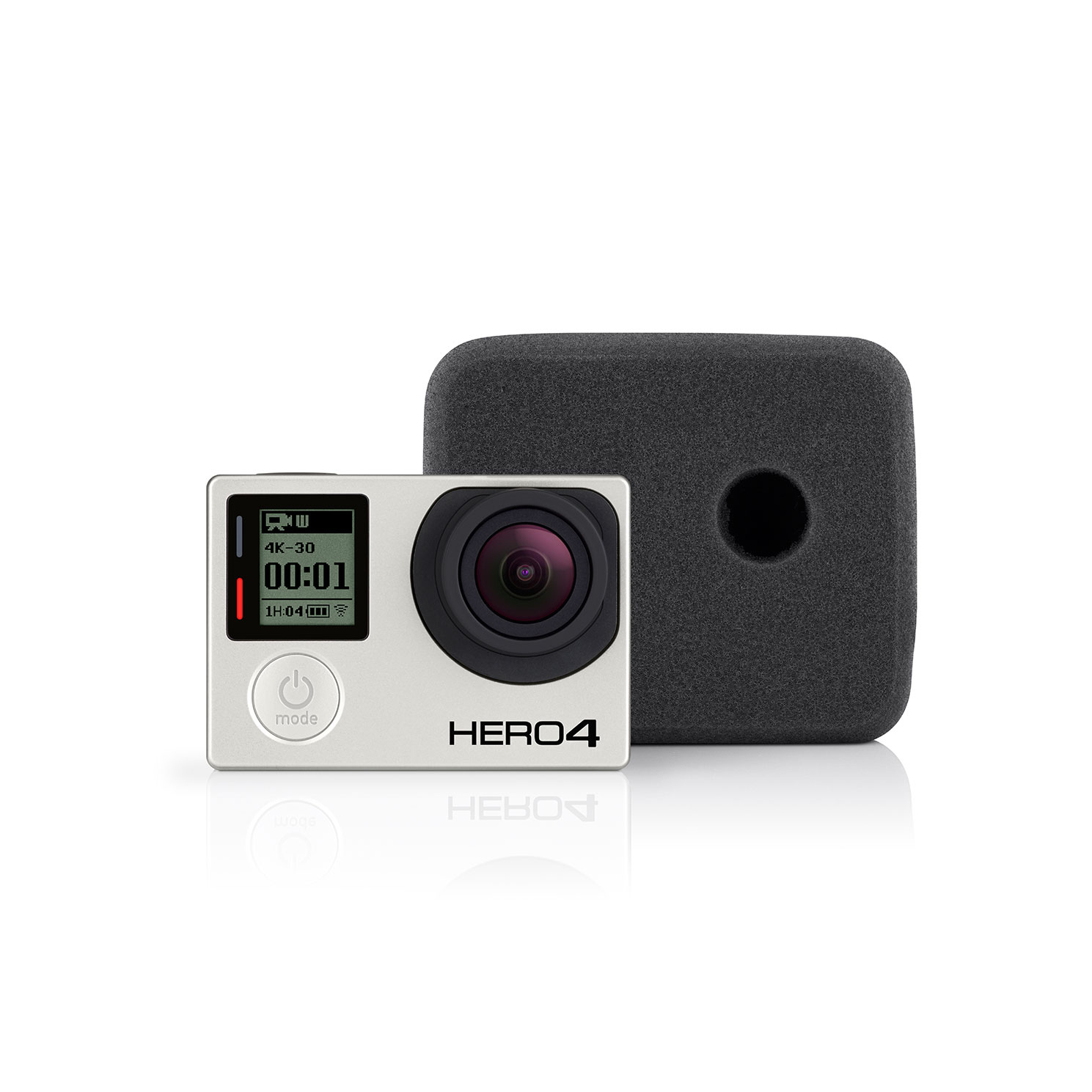 Foam windscreen reduces wind noise to enhance audio capture.