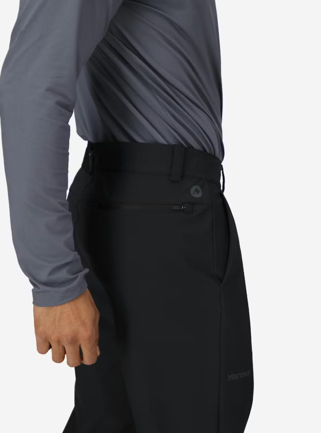 The Marmot Scree Pant combines performance and comfort for outdoor enthusiasts. Constructed from a mid-weight softshell double weave fabric that blends nylon and elastane, these pants offer abrasion resistance and a stretchy feel for unrestricted movement on rugged trails. The material features a water-repellent DWR finish, shedding light moisture and keeping you comfortable on unpredictable weather days.