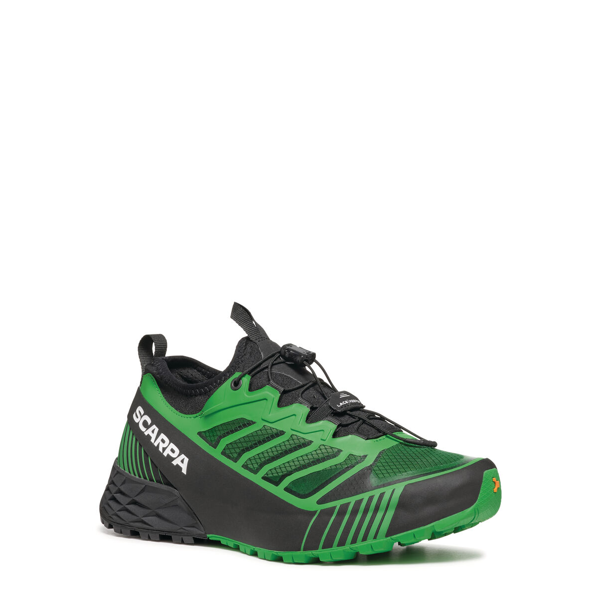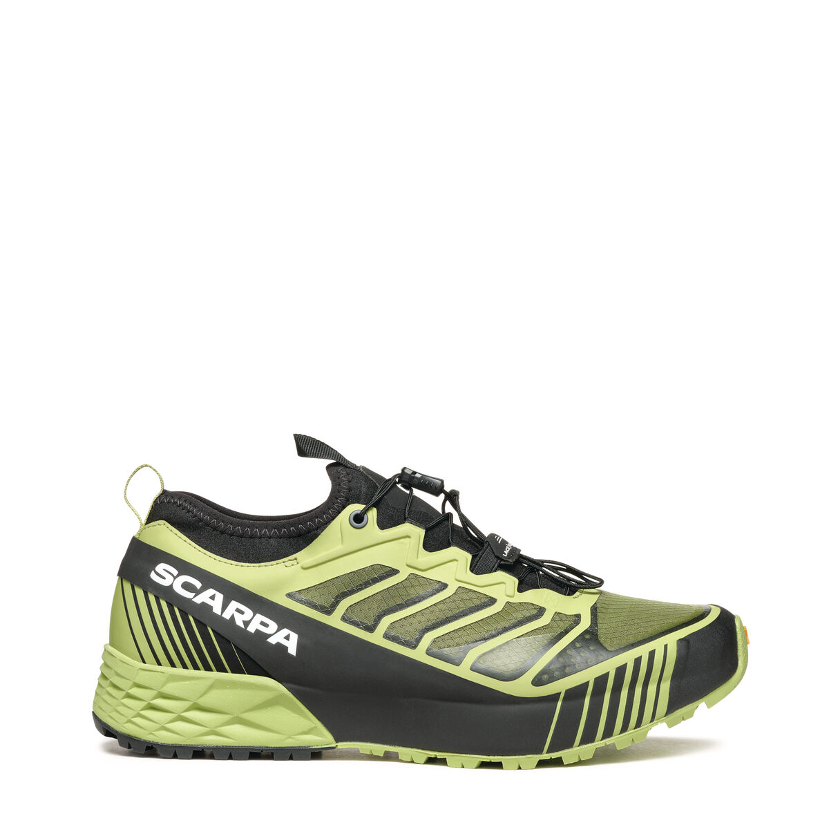 UPPER: The upper is built with Sock-Fit LW by SCARPA construction, featuring a lightweight and super breathable mesh bootie with heat-sealed reinforcements, which guarantees a precise and even wrap around the foot, while still providing outstanding comfort and flex at the ankle collar, tongue and forefoot. The shoe is built to wrap the foot with precision thanks to it’s reduced volume fit, perfect for this more technically oriented shoe. The heel is stabilized by an TPU band that completely wraps the shoe.