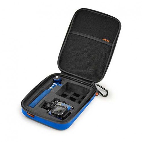 Capxule is a lightweight and resistant thermoformed soft case. It features a pre-cut foam insert with slots for a GoPro® HERO3 Housing, a U-Shot and an extra space for your small accessories. You can store additional items in the lid pocket and use the carabiner to secure the Capxule.